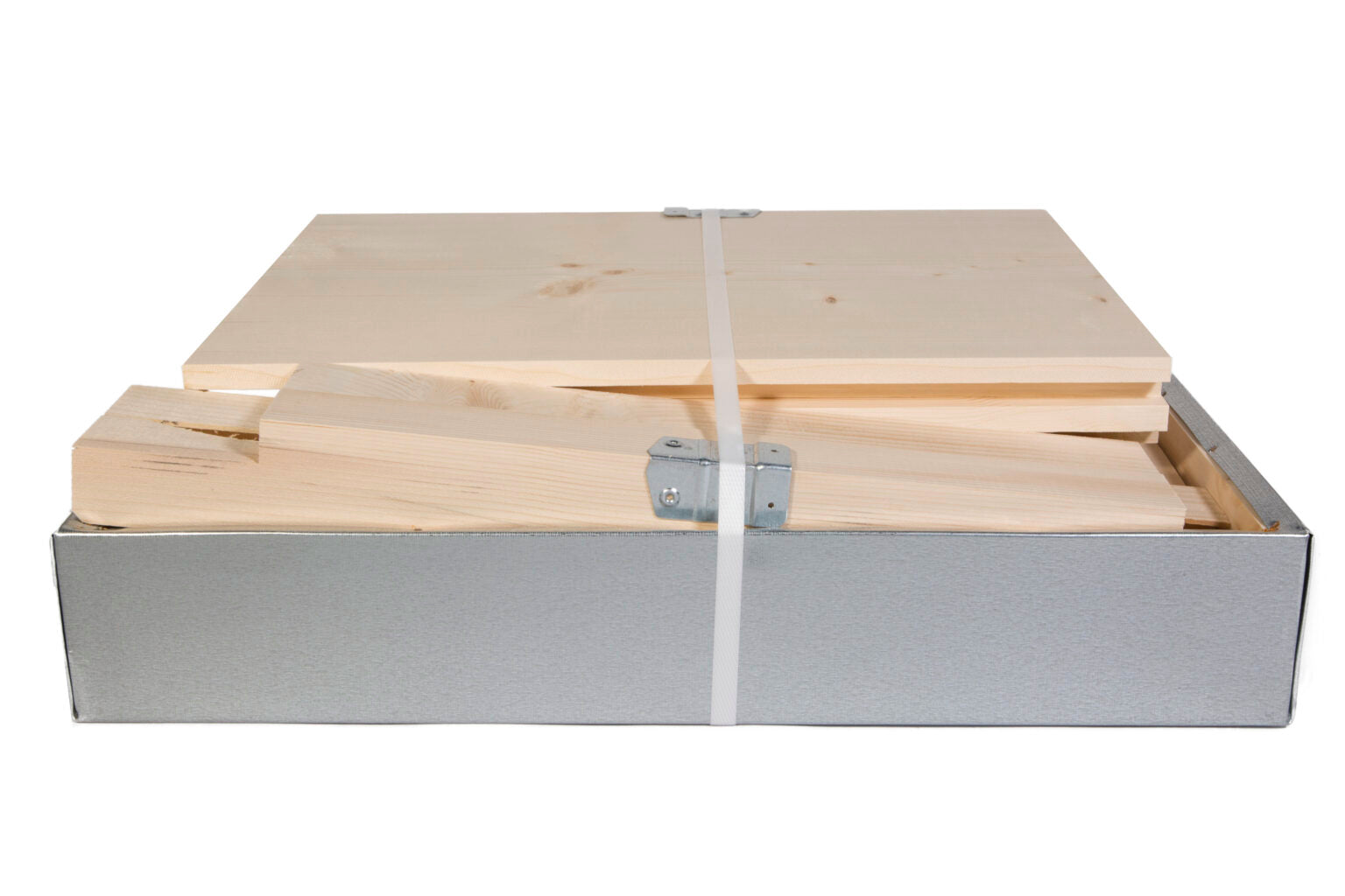 Arnia Standard da 10 Favi, solo nido, fondo a rete antivarroa, coprifavo alto con disco a 4 posizioni, coperchio piano ricoperto in lamiera zincata, mascherina per il trasporto, maniglie, angolari, coprimaschera in lamiera, porticina metallica, lamiera forata, vassoio in lamiera zincata, con viti.