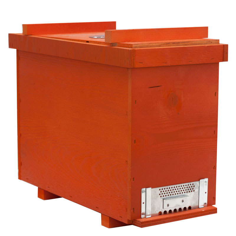 Cassettino portasciami da 6 telai in legno e multistrato fenolico, con fondo a rete, porticina dentata forata e tetto in legno con disco a 4 posizioni.